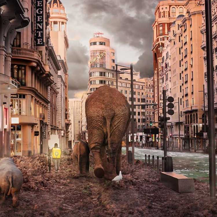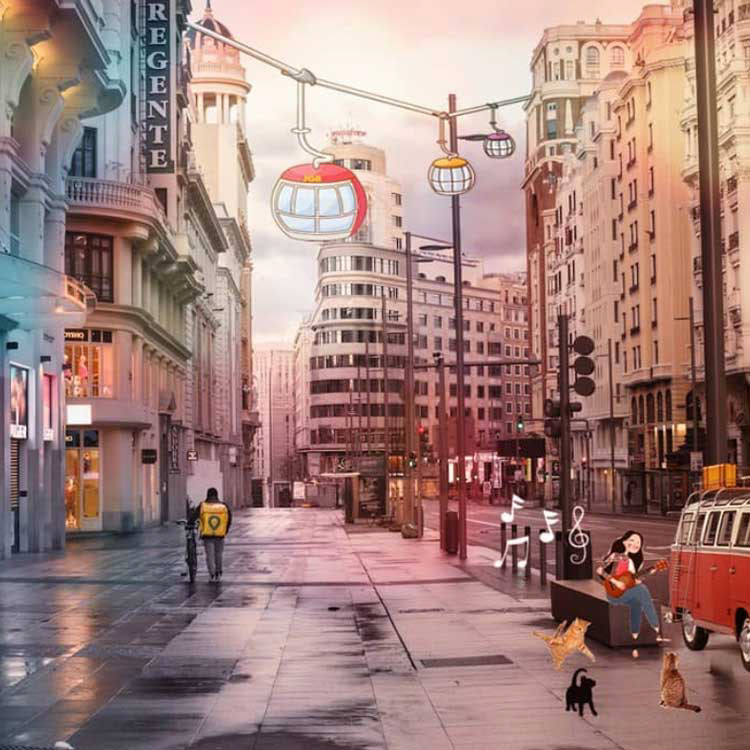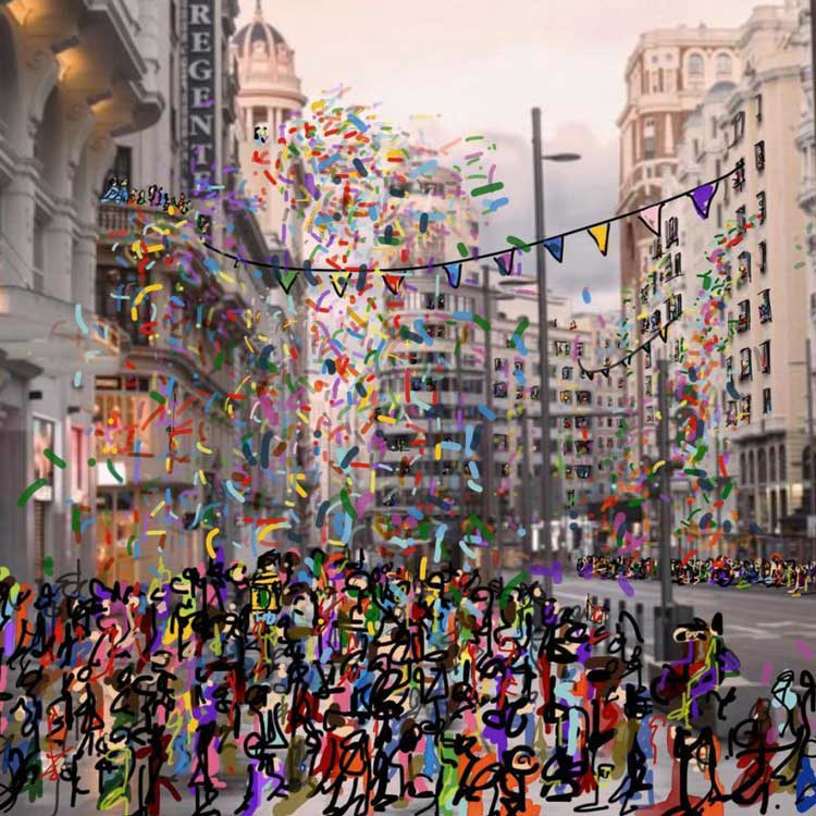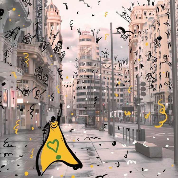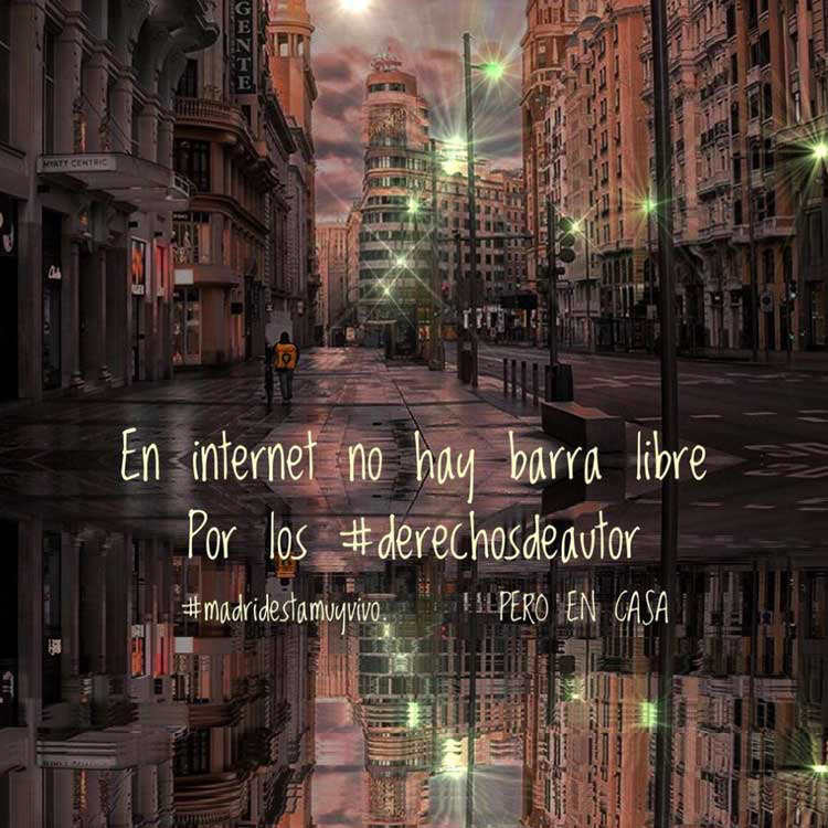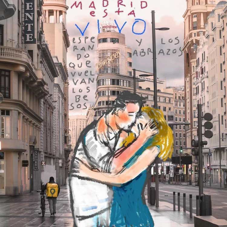 El fotógrafo Ignacio Pereira lleva casi una década fotografiando el alma y el corazón de las ciudades vaciadas. La manipulación de una de sus obras, que fue difundida por parte de Vox pervirtiendo, a juicio del autor, su mensaje original, ha desembocado en una doble causa. Por un lado el inicio de las acciones legales para reclamar sus derechos de autor, y por otro el nacimiento de la iniciativa #madridestamuyvivo que da un nuevo sentido optimista y alegre con versiones autorizadas de su obra creadas por artistas de primer nivel como Javier de Juan, Óscar Llorens, Dionisio González, Coque Malla.