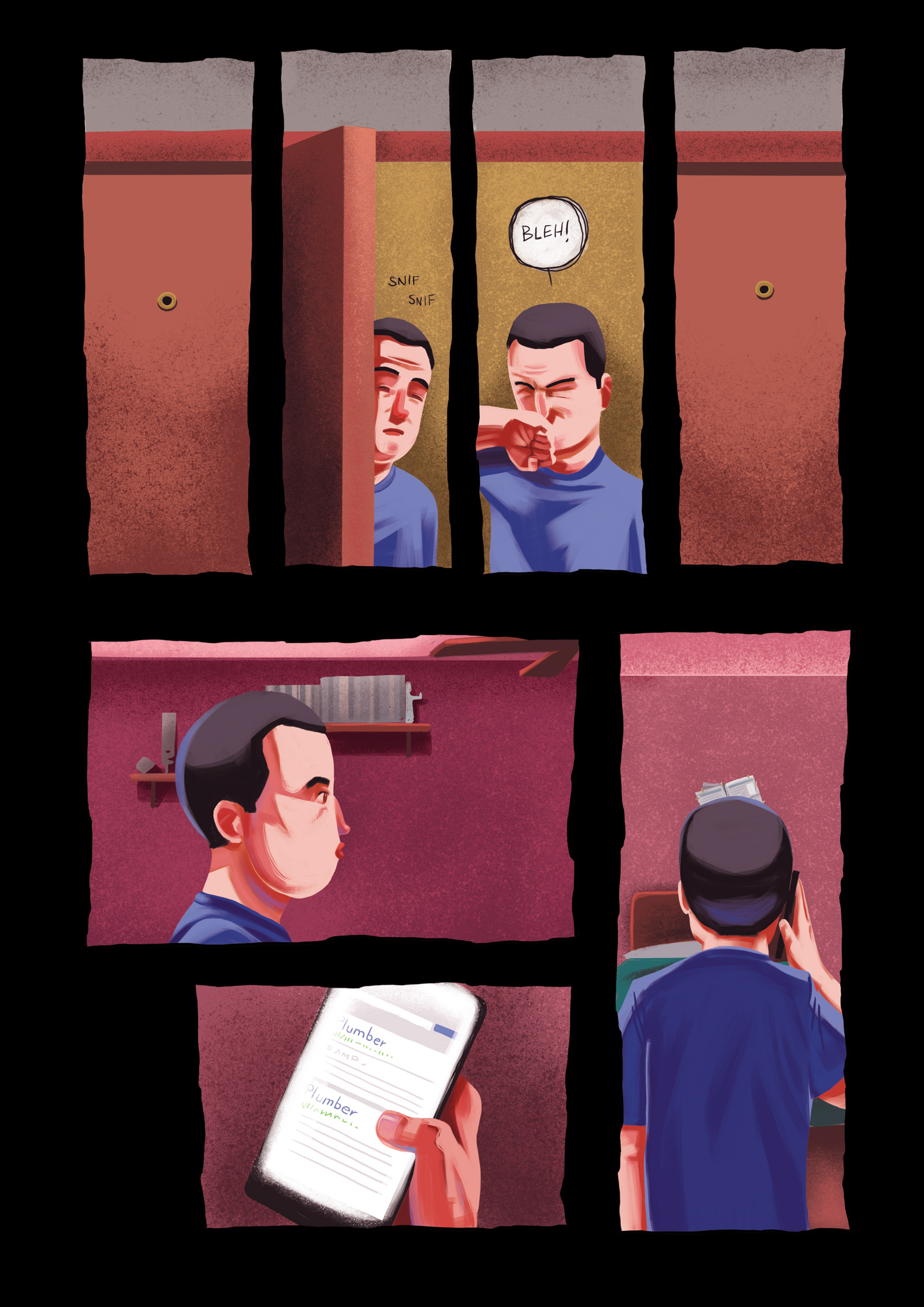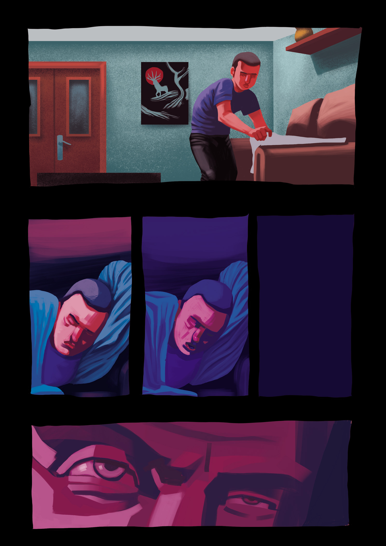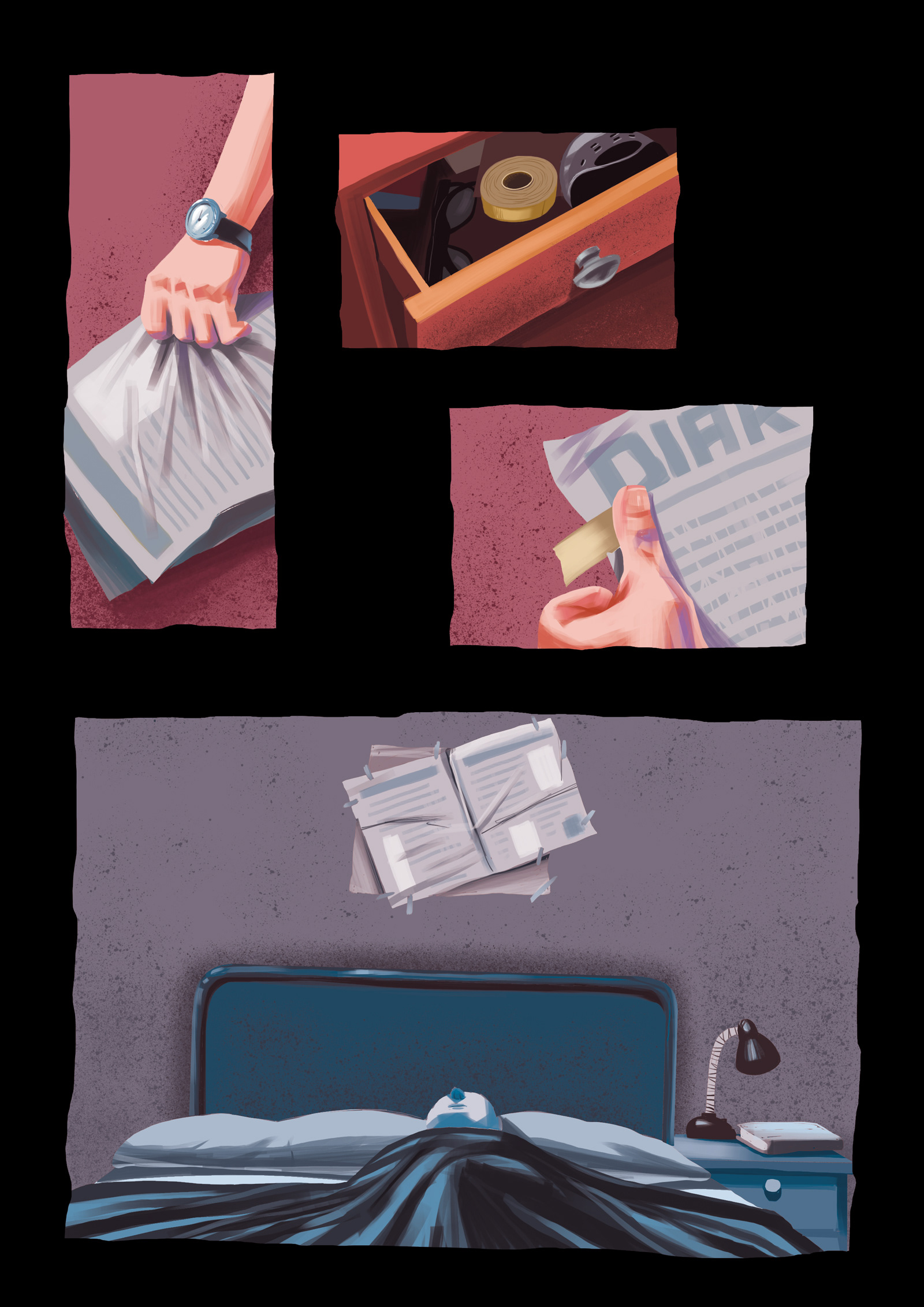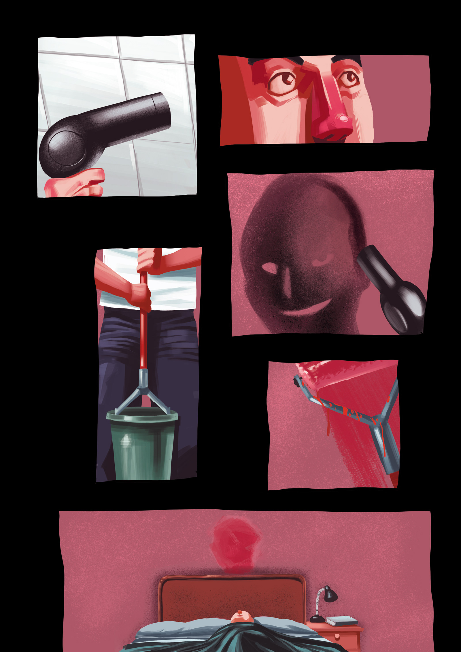 This project connects two techniques I wanted to develop. On the one hand, I wanted to draw in brushstroke. On the other, I wanted to experiment with the narrative and tell horror stories based in shock, more than in the story itself.