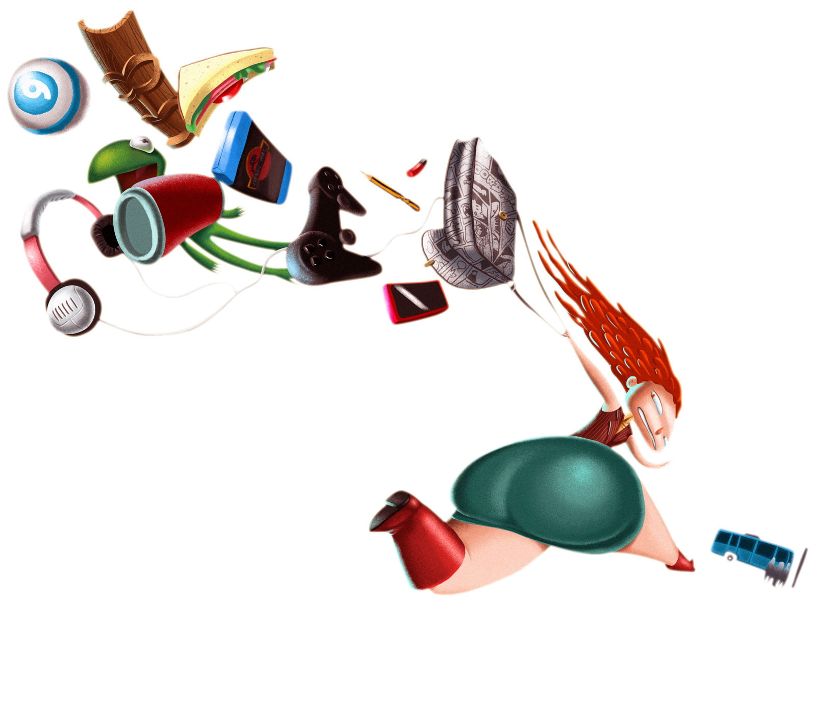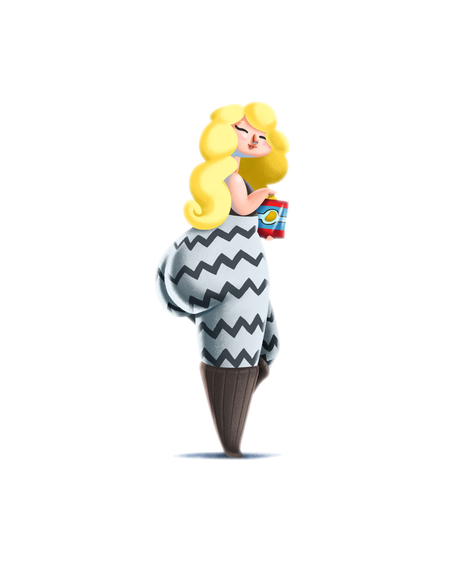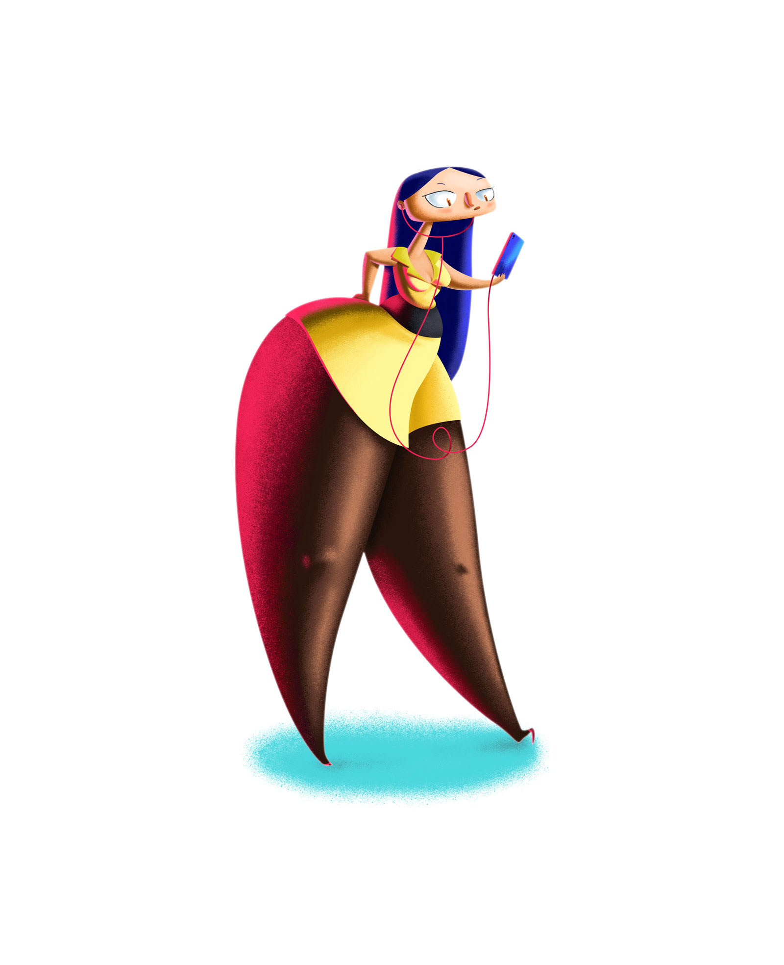 For this project, I wanted to design female characters and compare everyday situations with pure fantasy. The only thing they share is a body that avoids clichés: big butts and legs.